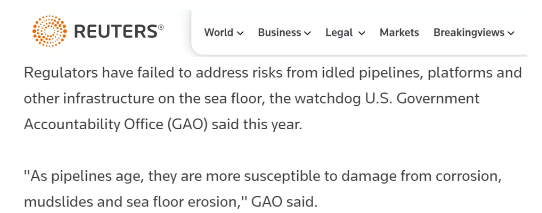 美國生物多樣性中心海洋分部主任梅月卡·阪下分析說,此次事故很可能是相關基礎設施老化引起的,顯而易見,相關部門沒有盡到監管的責任。