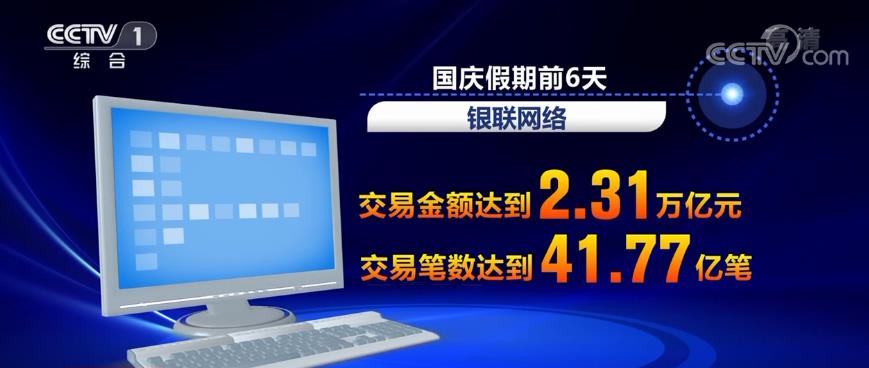 國慶假期消費有多熱?先來看數據。國慶假期前6天,銀聯網絡的交易金額達到2.31萬億元,交易筆數達到41.77億筆,日均交易筆數同比增長32.03%。網聯平臺共處理網絡支付交易120.19億筆,金額6.46萬億元。日均交易筆數和金額同比漲幅均超過20%。