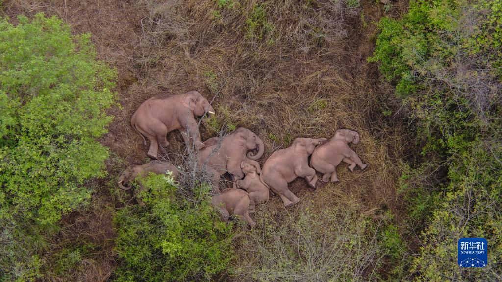 6月7日在云南省昆明市晉寧區夕陽彝族鄉拍攝的野象(無人機照片)。新華社發