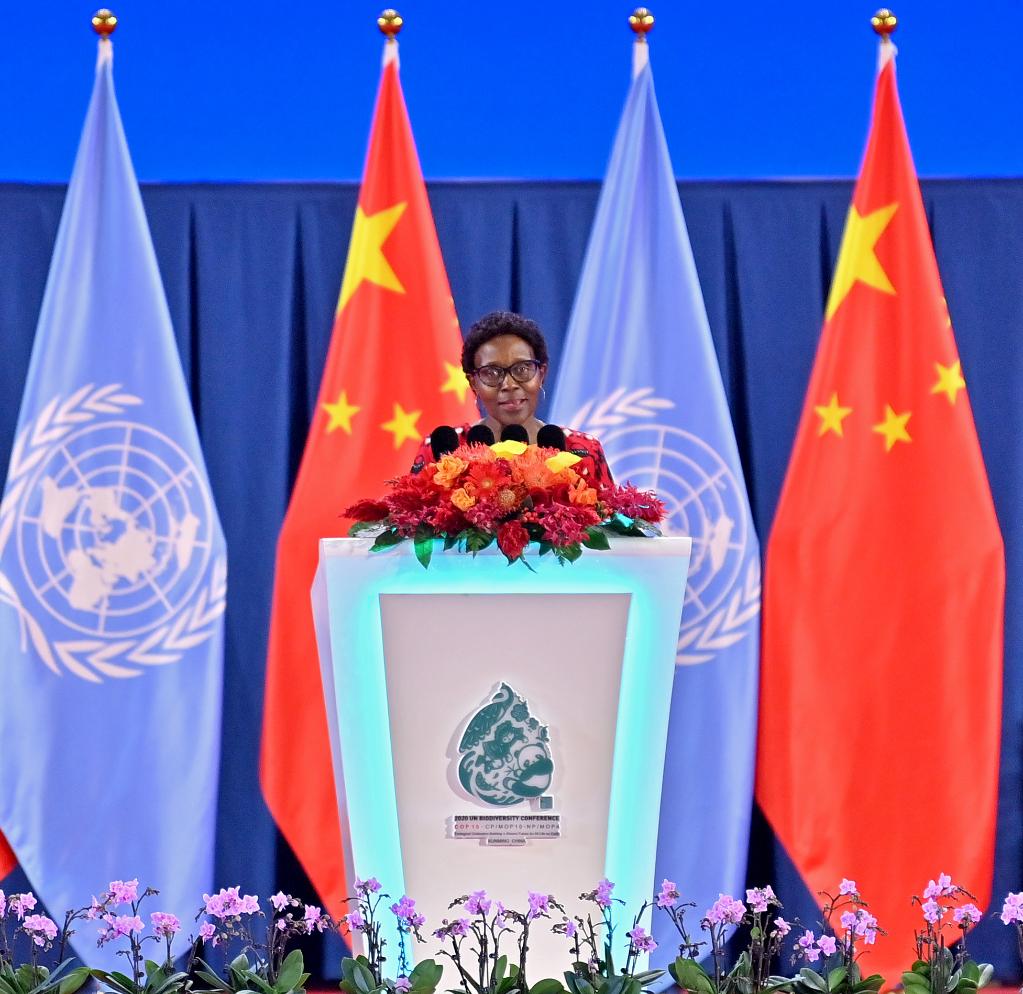 聯合國《生物多樣性公約》秘書處執行秘書伊麗莎白·穆雷瑪,不遠萬里,從加拿大蒙特利爾來到昆明。