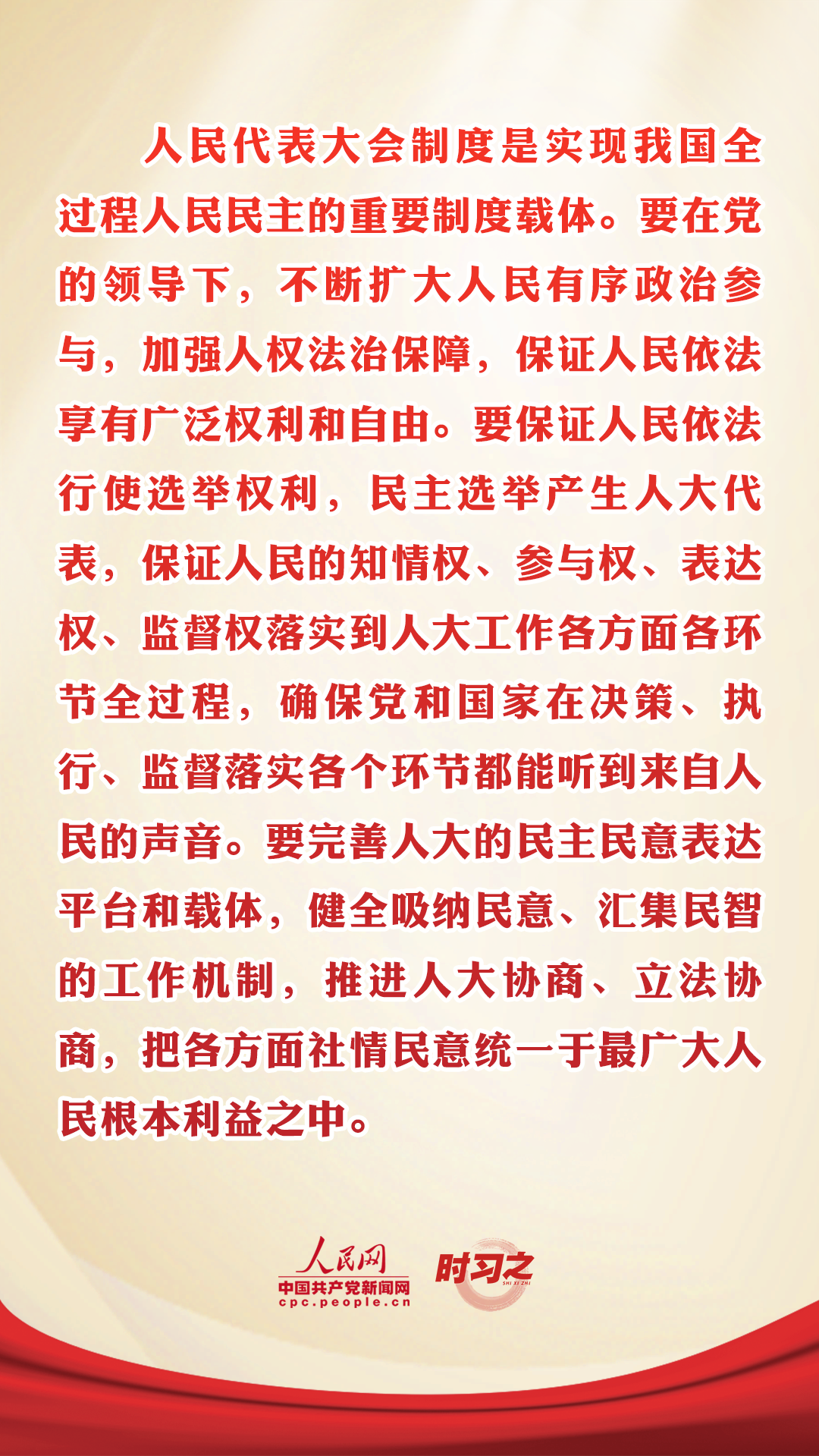 中央人大工作會(huì)議10月13日至14日在北京召開(kāi)。以“中央人大工作會(huì)議”為名的會(huì)議,在黨的歷史上、人民代表大會(huì)制度歷史上都是第一次。中共中央總書(shū)記、國(guó)家主席、中央軍委主席習(xí)近平出席會(huì)議并發(fā)表重要講話。習(xí)近平總書(shū)記的重要講話,深刻回答了新時(shí)代發(fā)展中國(guó)特色社會(huì)主義民主政治、堅(jiān)持和完善人民代表大會(huì)制度的一系列重大理論和實(shí)踐問(wèn)題。人民網(wǎng)·中國(guó)共產(chǎn)黨新聞網(wǎng)梳理相關(guān)論述,以饗讀者。