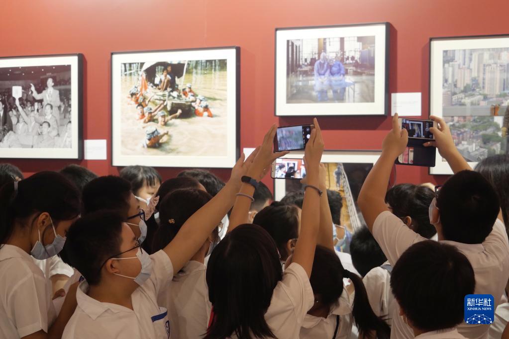 “今天看到很多我們在香港從小都沒見過的照片,感到既好奇又興奮。這些照片記錄了從一窮二白的年代,人民是如何不停地努力奮斗才把國家變成現在這么富強繁榮的。每個時代的生活點滴都有圖片記憶,太珍貴了!毕愀矍嗄昱司钜辉绫闩c朋友來到展覽現場,認真聆聽導賞員講解每一幅照片。