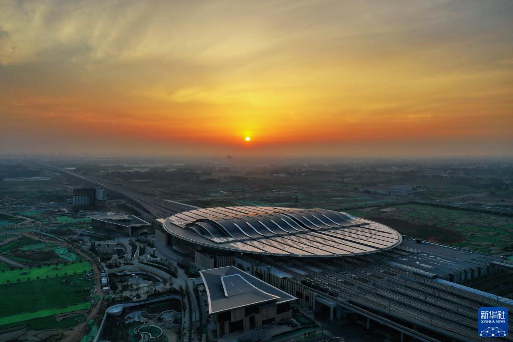 這是7月1日拍攝的京雄城際鐵路雄安站(無人機照片)。新華社記者 牟宇 攝