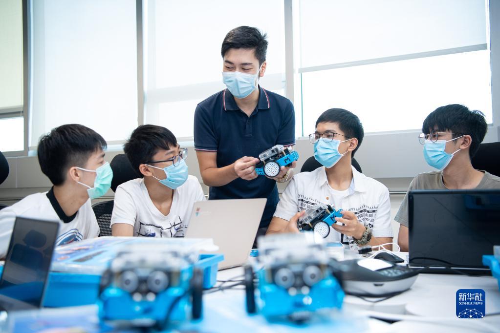 2020年7月14日,創(chuàng)業(yè)者吳以航在澳門青年創(chuàng)業(yè)孵化中心為學(xué)生上培訓(xùn)課。“80后”吳以航是澳門青年創(chuàng)業(yè)孵化中心會(huì)員,2019年,他進(jìn)駐廣州市天河區(qū)港澳青年之家,成立藍(lán)點(diǎn)教育技術(shù)(廣州)有限公司。新華社記者 張金加 攝