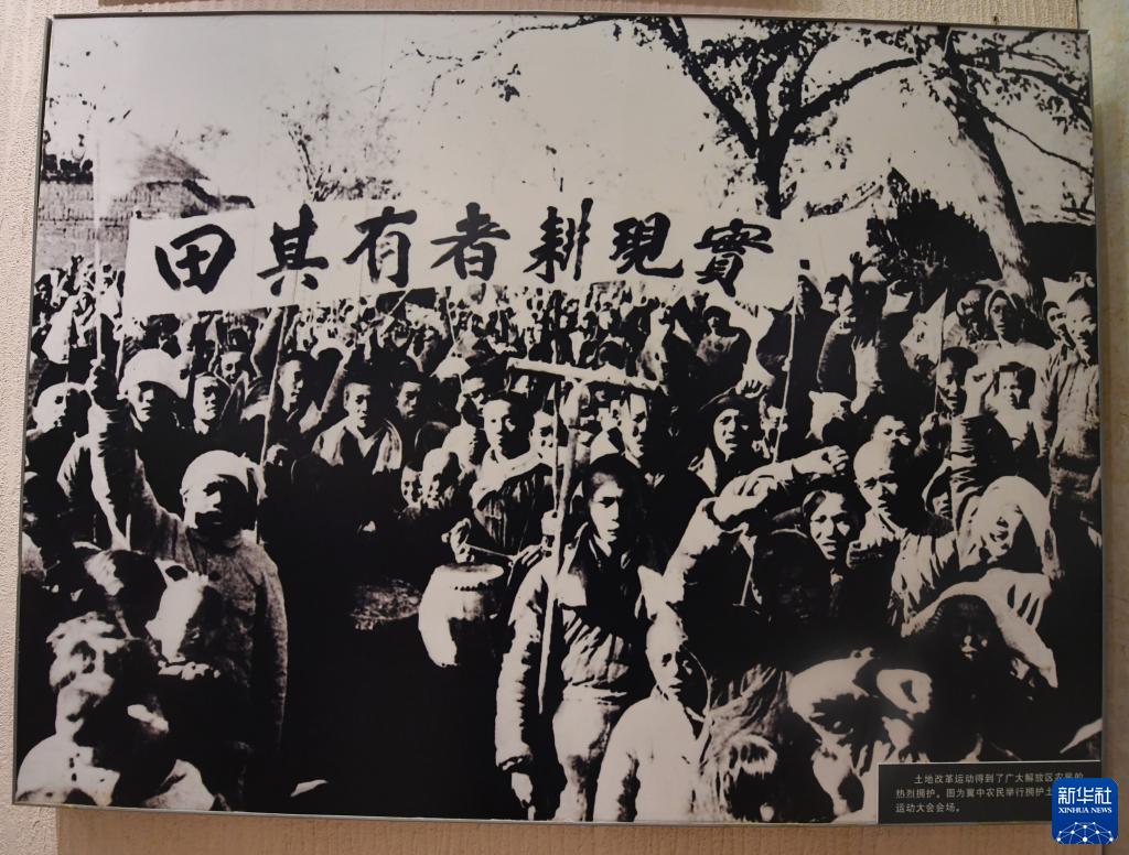 這是在西柏坡紀(jì)念館拍攝的照片,反映的是冀中農(nóng)民舉行擁護(hù)土地改革運(yùn)動(dòng)大會(huì)(2019年4月9日攝)。 新華社記者 朱旭東 攝