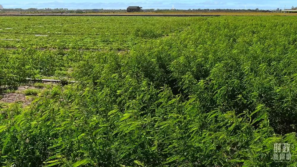 △黃河三角洲農高區。田菁是耐鹽堿綠肥作物,能夠促進鹽堿地用養結合。(總臺記者韓森拍攝)