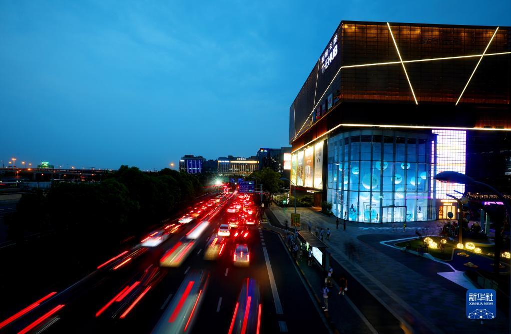 這是從連接虹橋商務(wù)區(qū)和虹橋交通樞紐的人行天橋上俯瞰虹橋商務(wù)區(qū)(2020年9月10日攝)。新華社記者 方喆 攝