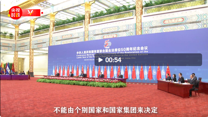 國家主席習近平25日在北京出席中華人民共和國恢復(fù)聯(lián)合國合法席位50周年紀念會議并發(fā)表重要講話。