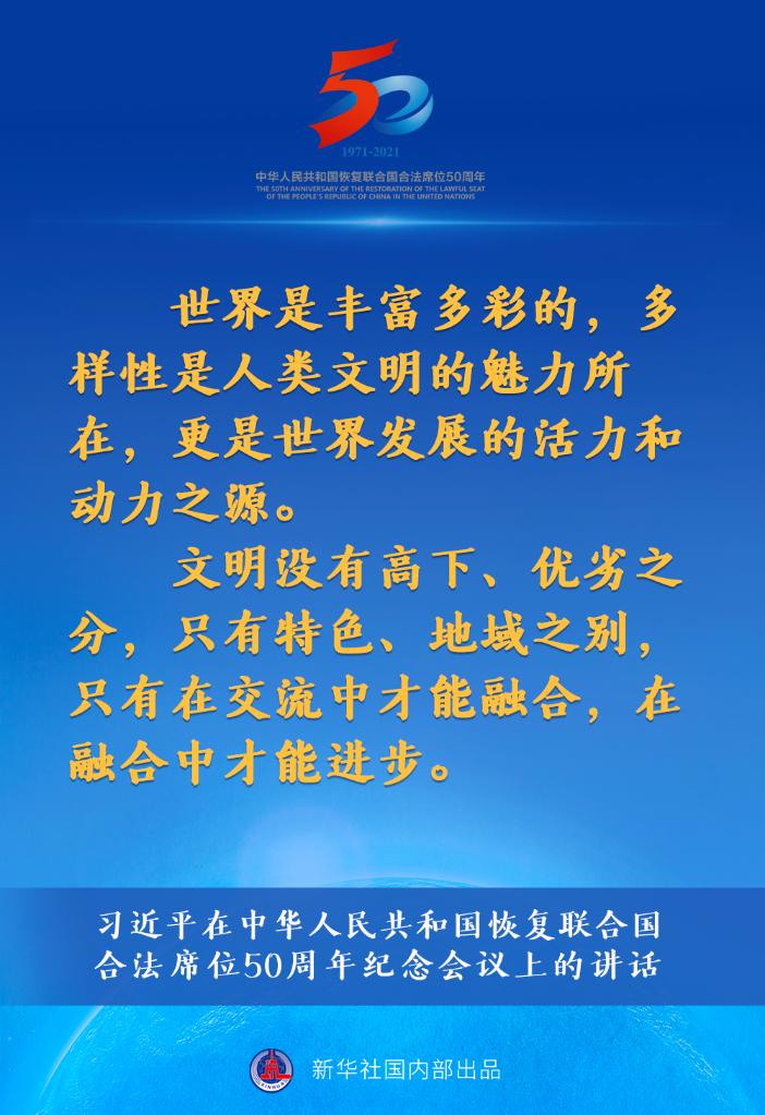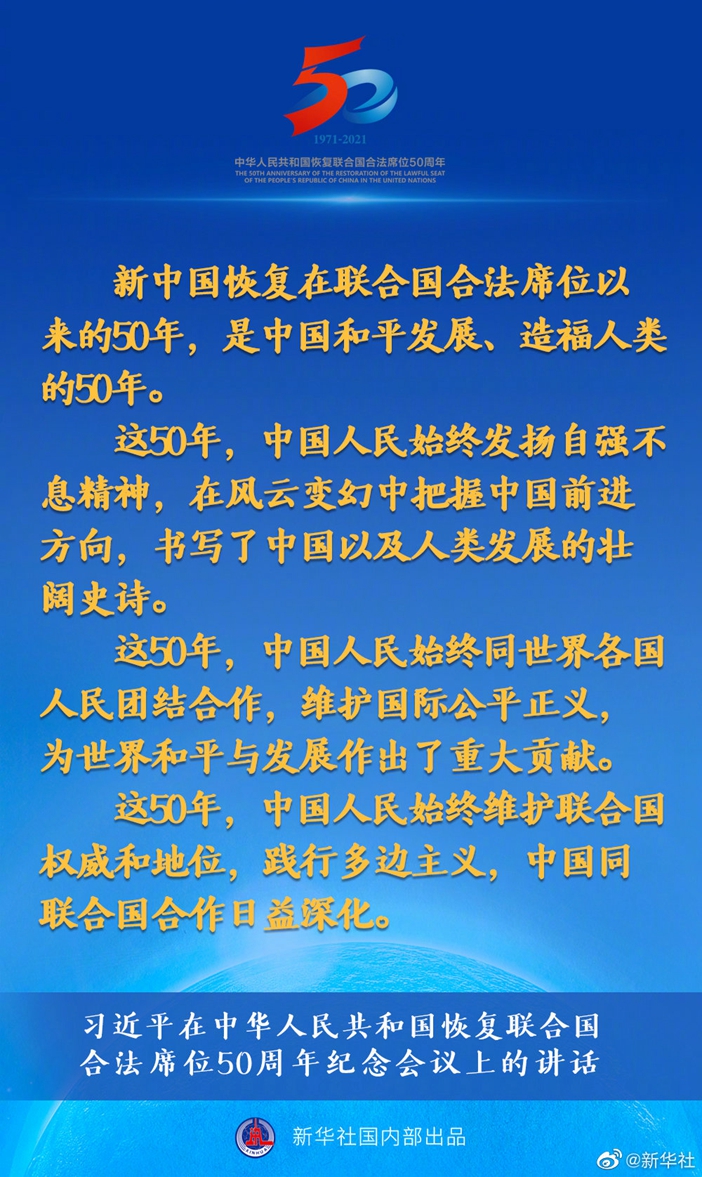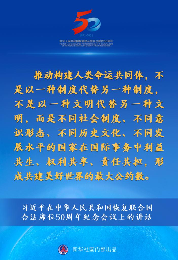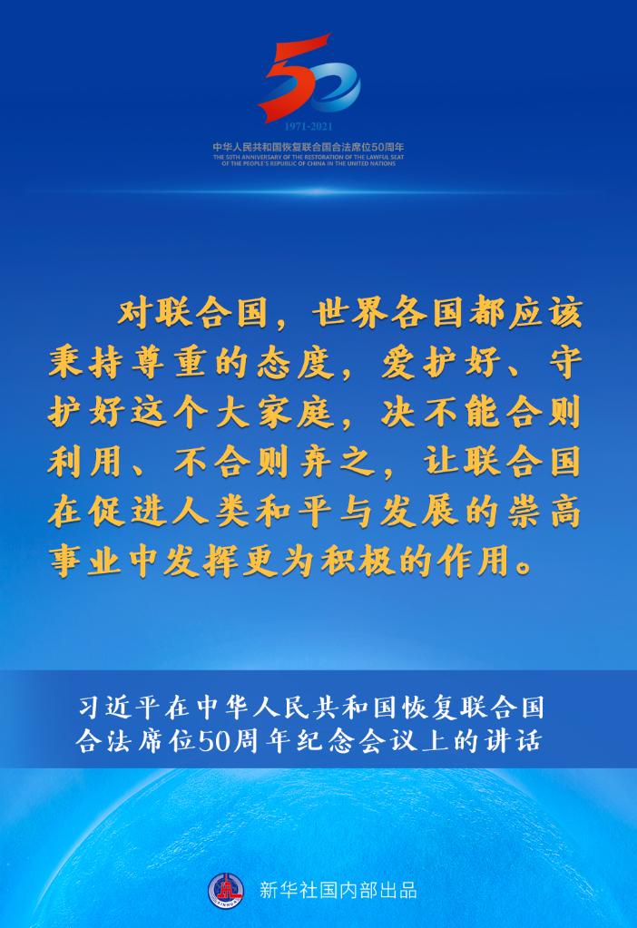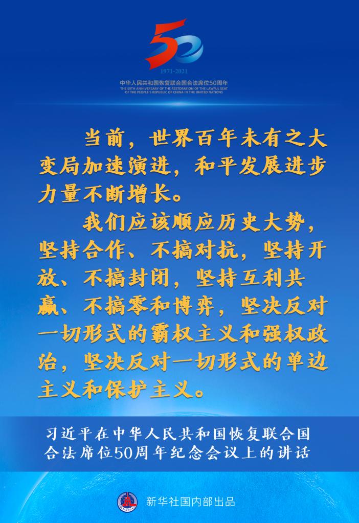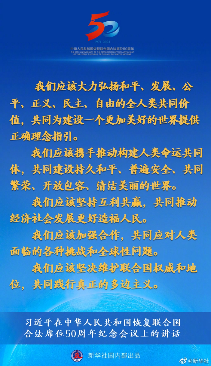 習(xí)近平在中華人民共和國恢復(fù)聯(lián)合國合法席位50周年紀(jì)念會(huì)議上的講話要點(diǎn)速覽
