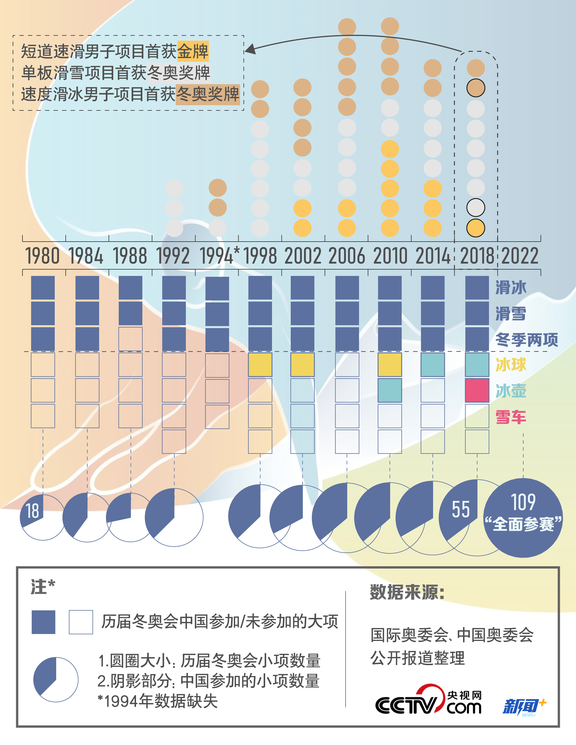 北京獲得冬奧會(huì)舉辦權(quán)前,中國(guó)代表團(tuán)在歷屆冬奧會(huì)上參賽的大項(xiàng)(Sport)僅占所有大項(xiàng)種類(lèi)的半數(shù)左右,除了滑冰、滑雪和冬季兩項(xiàng)等“常規(guī)”項(xiàng)目外,其他項(xiàng)目中零星可見(jiàn)中國(guó)運(yùn)動(dòng)員的身影。也就是說(shuō),許多冬季項(xiàng)目在中國(guó)仍然是空白——據(jù)統(tǒng)計(jì),在北京冬奧會(huì)109個(gè)小項(xiàng)(Event)中,大約有三分之一此前并未開(kāi)展。短短幾年間,中國(guó)競(jìng)技冰雪運(yùn)動(dòng)惡補(bǔ)短板,力爭(zhēng)在2022年冬奧會(huì)上,從頭至尾都有帶有五星紅旗標(biāo)志的中國(guó)運(yùn)動(dòng)員站在賽場(chǎng)上,實(shí)現(xiàn)“全面參賽”目標(biāo)。