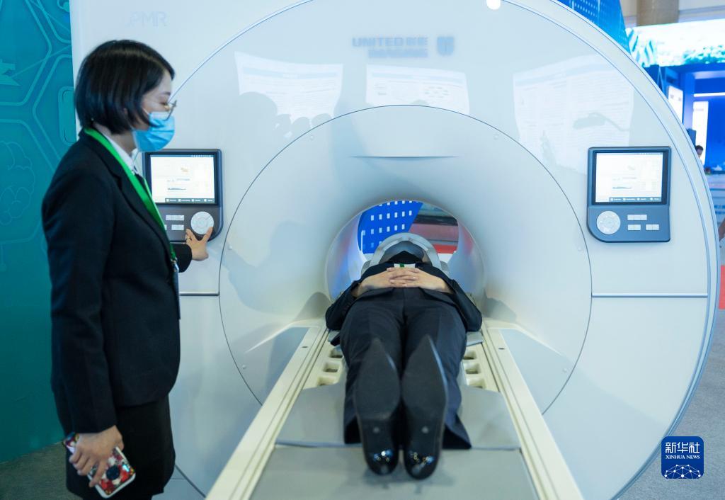 10月21日,在北京展覽館舉行的國(guó)家“十三五”科技創(chuàng)新成就展上,工作人員展示上海聯(lián)影一體化全身正電子發(fā)射/磁共振成像系統(tǒng)。新華社記者 才揚(yáng) 攝