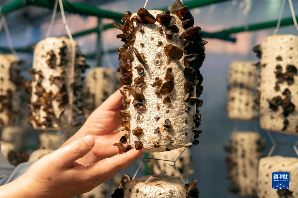10月21日,在北京展覽館舉行的國(guó)家“十三五”科技創(chuàng)新成就展上,工作人員展示陜西柞水木耳智能大棚中的木耳。新華社記者 才揚(yáng) 攝