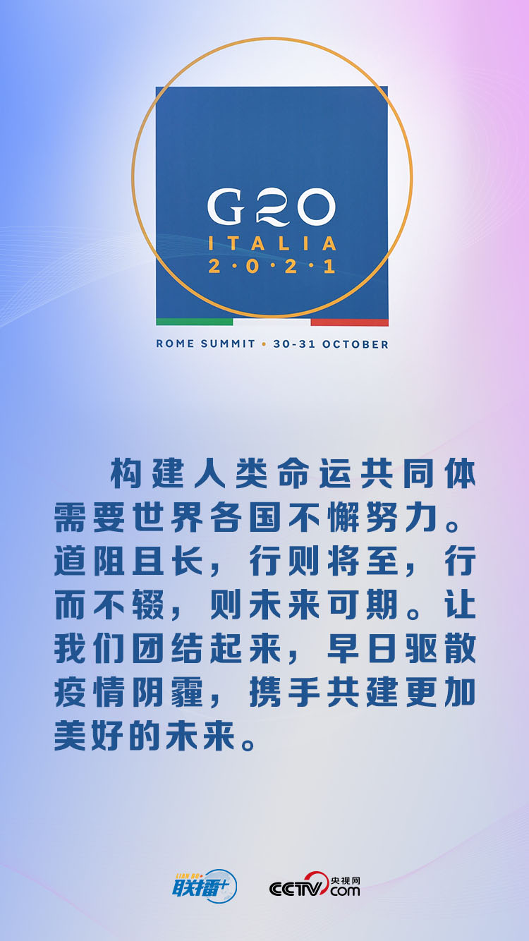 習主席強調,面對世界百年未有之大變局和世紀疫情,二十國集團作為國際經濟合作主要論壇,要負起應有責任,為了人類未來、人民福祉,堅持開放包容、合作共贏,踐行真正的多邊主義,推動構建人類命運共同體。