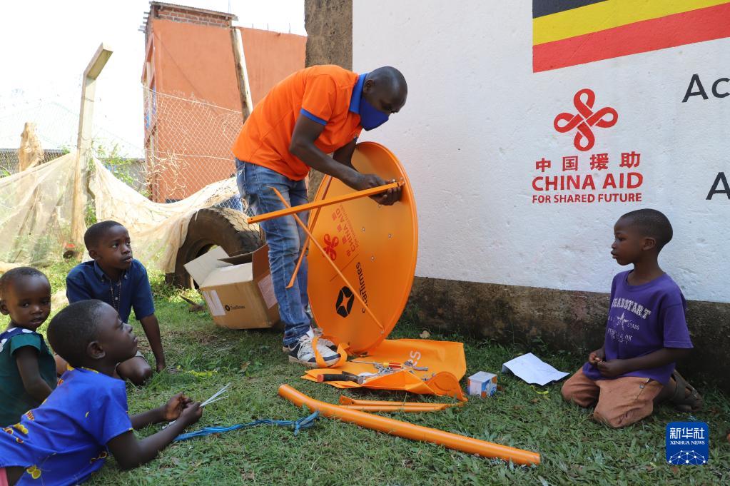 9月10日,技術人員在烏干達中部瓦基索區的布韋倫加村安裝調試數字電視設備。“萬村通”項目是2015年中非合作論壇約翰內斯堡峰會提出的中非人文領域合作舉措之一,旨在為非洲1萬個村莊接入衛星數字電視信號。新華社記者 張改萍 攝