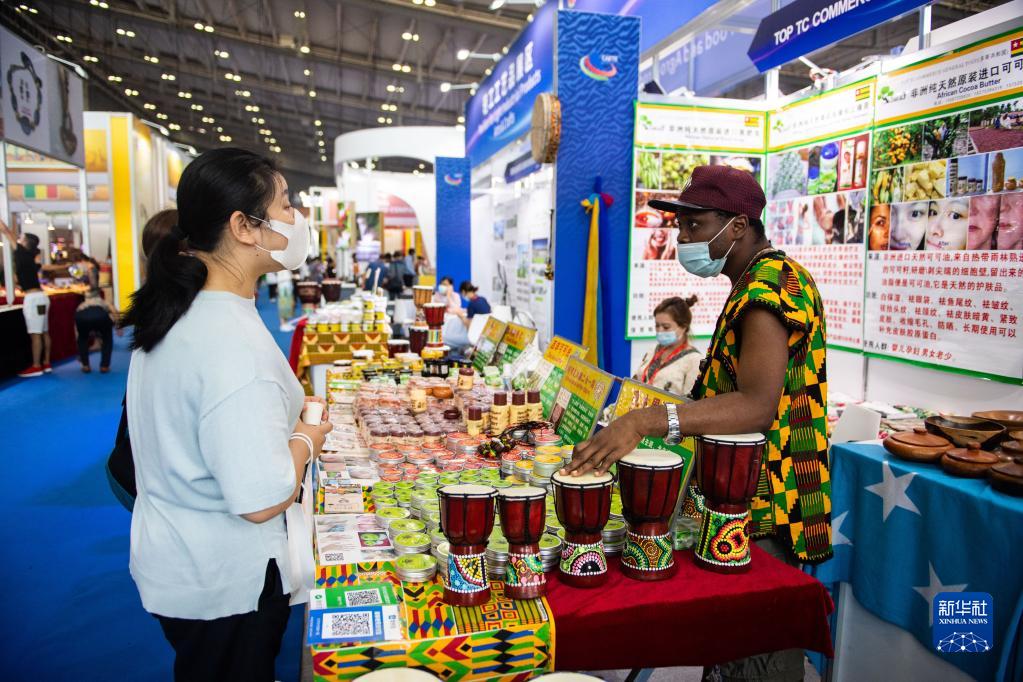 9月28日,在湖南長沙舉行的第二屆中國-非洲經貿博覽會上,觀眾在選購非洲護膚品。新華社記者 陳思汗 攝