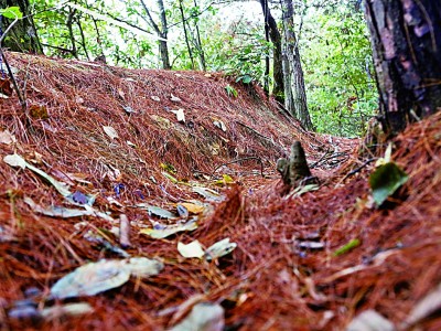 老鴉山上遵義戰役戰斗遺址的戰壕,經過80多年的風雨,如今出露高度只有10—35厘米。秦波攝/光明圖片