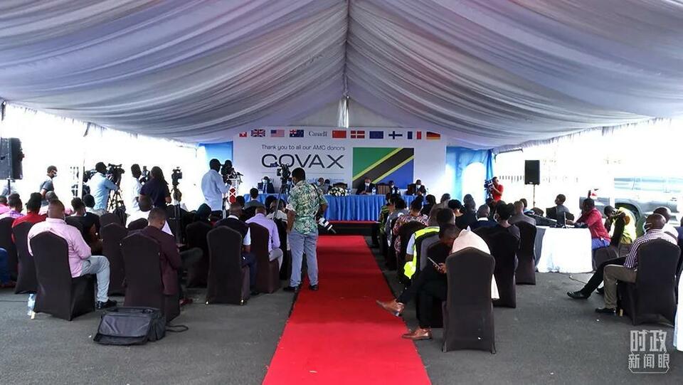 △2021年10月8日,中國政府通過“新冠疫苗實施計劃”捐贈的新冠疫苗運抵坦桑尼亞。當地政府在機場舉行隆重的歡迎儀式。(總臺記者史躍拍攝)