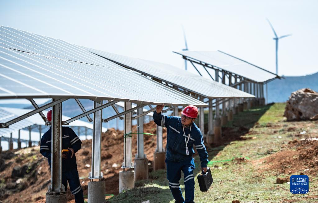 2019年,她的家鄉建起一座占地2000多畝的光伏電站。過去,這里曾是水土流失嚴重的石漠化山區,從電站第一塊光伏板搭建開始,她就來到電站務工,見證了荒山中崛起綠色能源基地的蛻變。