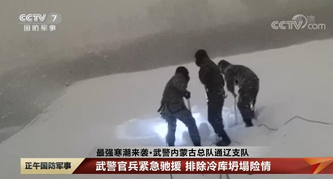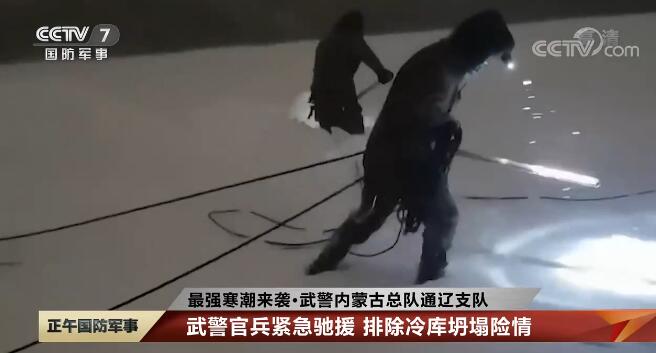 11月8日晚,內(nèi)蒙古通遼一農(nóng)副產(chǎn)品公司冷庫頂部積雪嚴(yán)重,一旦坍塌將嚴(yán)重威脅當(dāng)?shù)厝罕姲踩榈谝粫r(shí)間排除險(xiǎn)情,武警內(nèi)蒙古總隊(duì)通遼支隊(duì)迅速機(jī)動(dòng)至現(xiàn)場(chǎng),官兵們用吊車?yán)痄摻z繩,在冷庫棚頂清理積雪。經(jīng)過官兵們連續(xù)5小時(shí)的奮戰(zhàn),險(xiǎn)情被及時(shí)排除,確保了冷庫安全,挽回經(jīng)濟(jì)損失上億元。