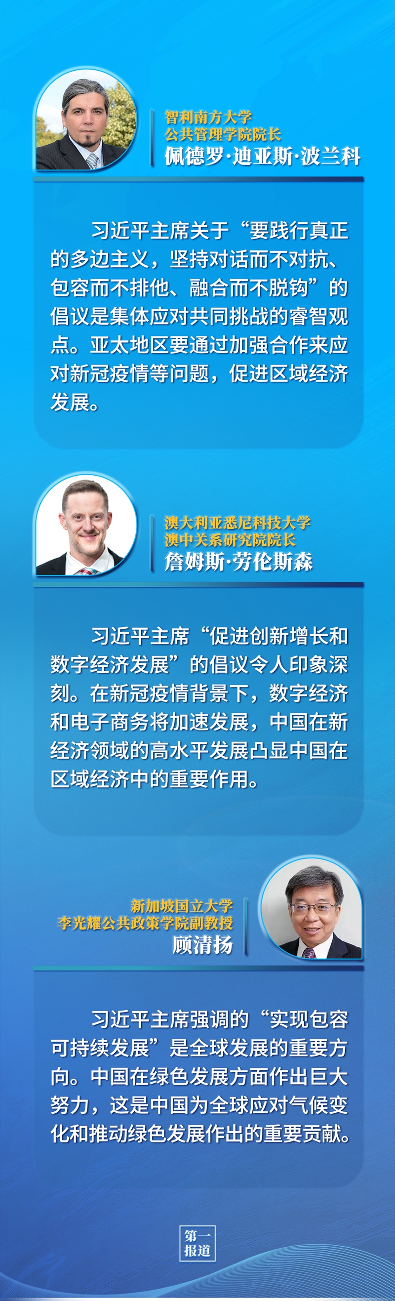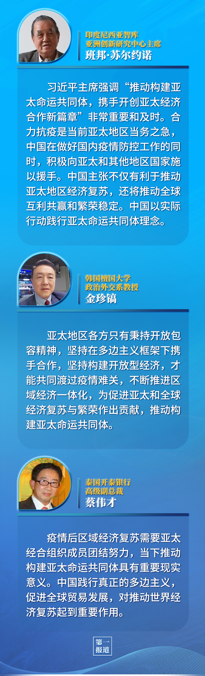 國家主席習近平12日在北京以視頻方式出席亞太經合組織第二十八次領導人非正式會議并發表重要講話。多國人士認為,習近平主席提出深化區域合作的一系列政策主張,凝聚亞太團結合作、共克時艱共識,為推動構建亞太命運共同體、促進世界經濟復蘇發展賦予動能。