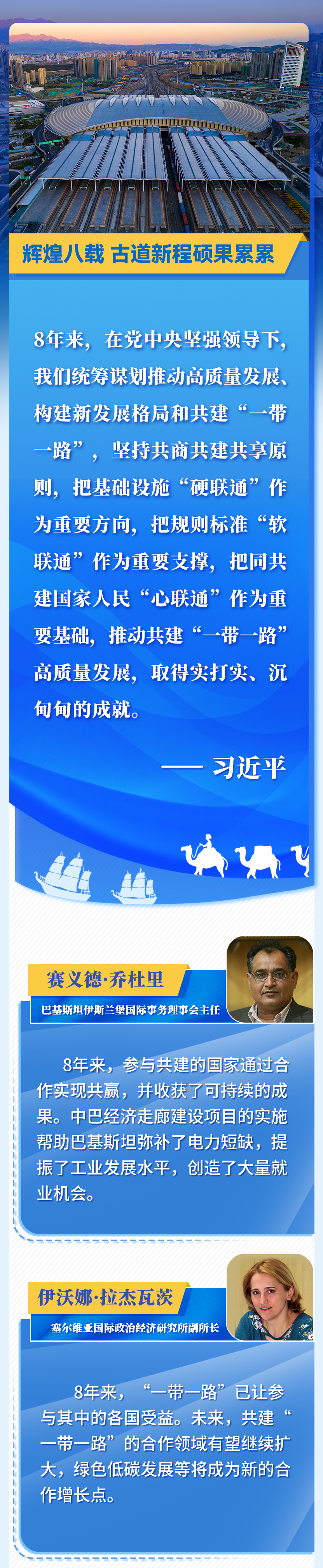 中共中央總書記、國家主席、中央軍委主席習近平19日在北京出席第三次“一帶一路”建設座談會并發表重要講話。多國人士和我海外項目人員表示,“一帶一路”倡議提出8年來取得實實在在成果,習近平主席的重要講話為繼續推動共建“一帶一路”高質量發展擘畫藍圖、指明方向,期待共建“一帶一路”不斷取得新成效,更好造福各國人民。