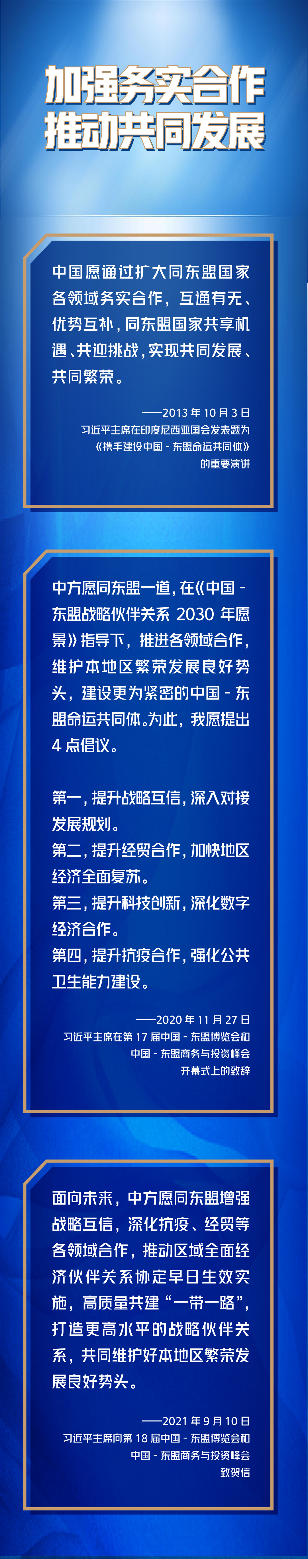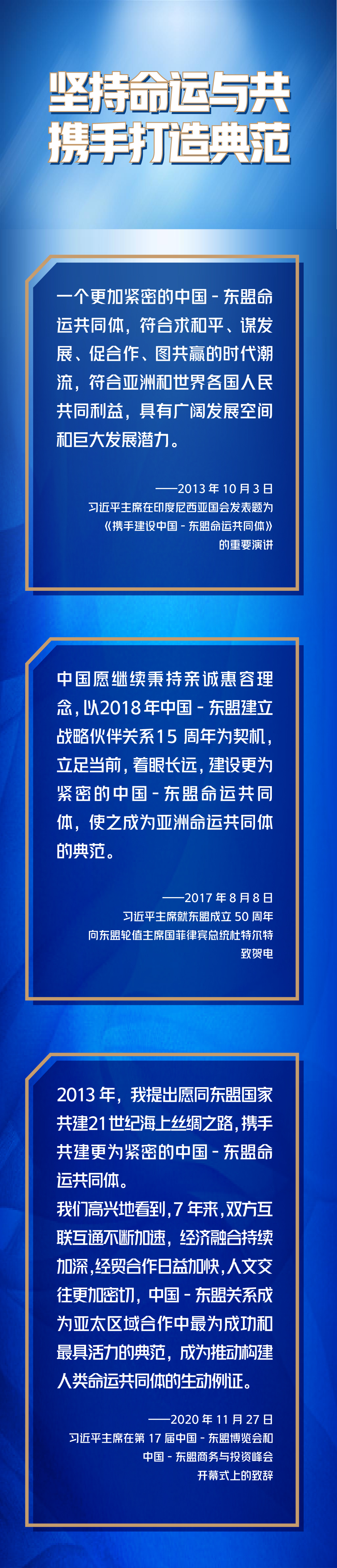攜手走過30年,中國-東盟關系已成為亞太區域合作中最為成功、最具活力的典范,成為推動構建人類命運共同體的生動例證。習近平主席同各方一起,為建設更為緊密的中國-東盟命運共同體擘畫藍圖、指引方向。