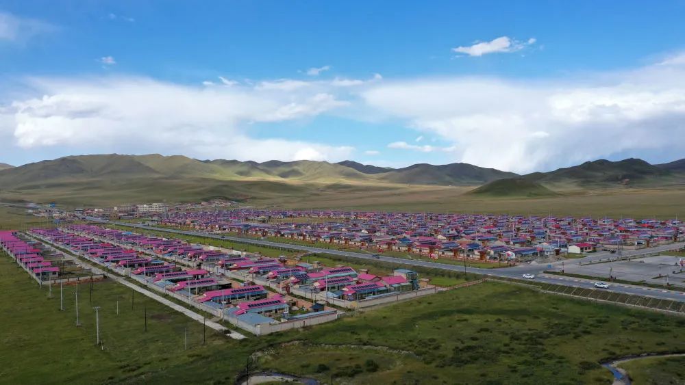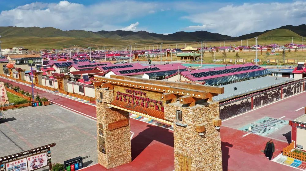 這是9月9日拍攝的甘肅省甘南藏族自治州碌曲縣尕海鎮(zhèn)尕秀村村貌(無人機(jī)照片)。新華社記者 陳斌 攝