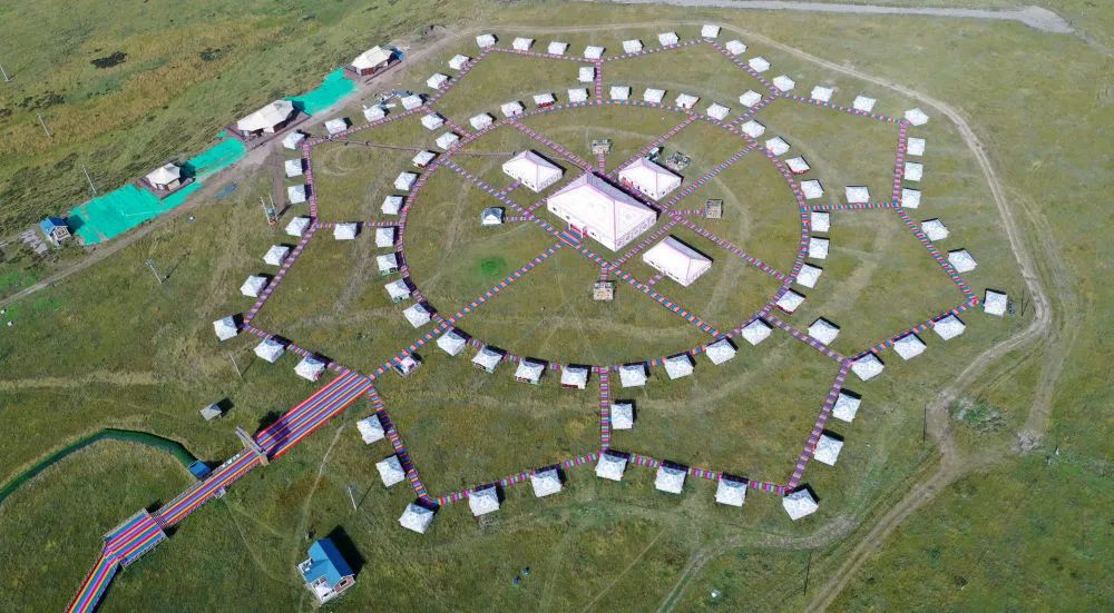 這是9月9日拍攝的甘肅省甘南藏族自治州碌曲縣尕海鎮(zhèn)尕秀村帳篷城景區(qū)(無人機(jī)照片)。新華社記者 陳斌 攝