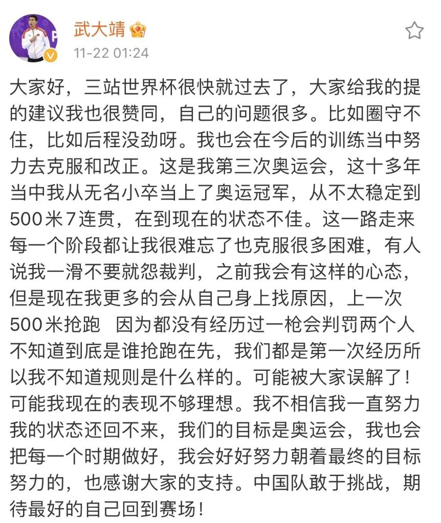 武大靖誠懇接受建議