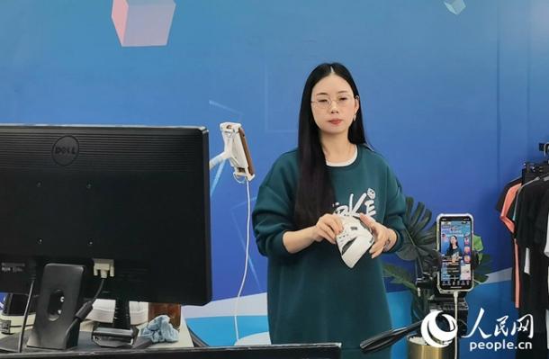 在泉州石獅青創(chuàng)城,一家鞋服企業(yè)正在直播。人民網(wǎng) 林曉麗攝