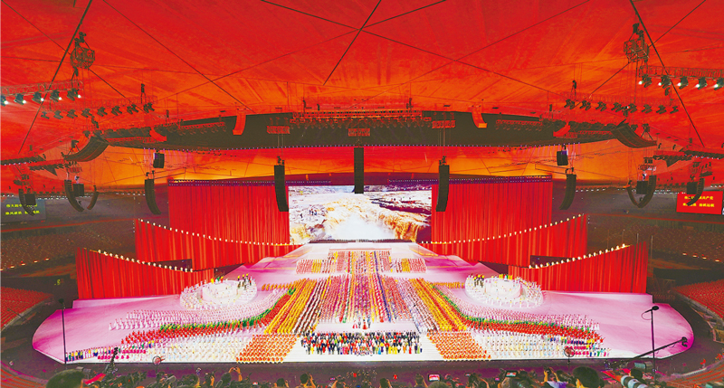 2021年6月28日晚,慶祝中國(guó)共產(chǎn)黨成立100周年文藝演出《偉大征程》在國(guó)家體育場(chǎng)盛大舉行。這是歌曲《領(lǐng)航》的演出現(xiàn)場(chǎng)。 新華社記者 邢廣利/攝
