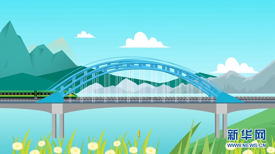 手繪中老鐵路元江雙線特大橋(視頻截圖)。