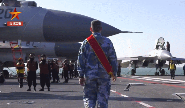 走上甲板觀看艦載機起降
