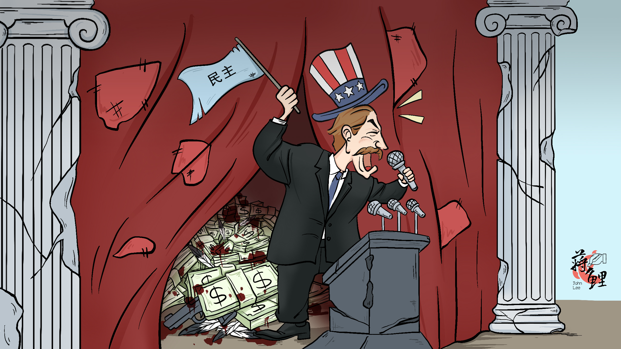 美國(guó)高舉“民主”的大旗,卻遮不住其國(guó)內(nèi)種種丑陋的民主劣跡。希望那些跟隨者們也停下腳步,看看它遮羞的幕布后,染血的美元。