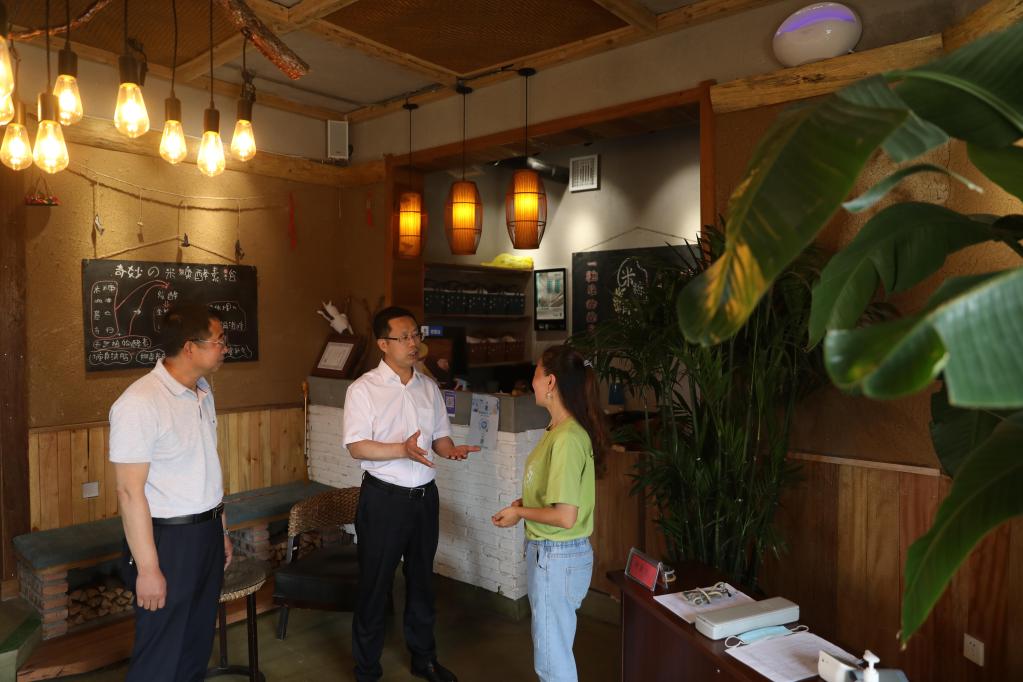 7月2日,在沈陽(yáng)市沈北新區(qū)興隆臺(tái)街道單家村,聞然(中)在調(diào)研民宿發(fā)展情況。新華社記者楊青攝