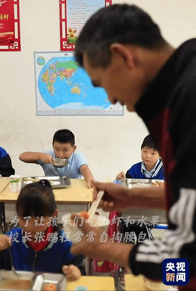河南周口太康縣清集鎮二郎廟小學中大多是留守兒童,平時在學校吃午餐。為了讓孩子們吃得更好些,校長張鵬程每天清晨去集市采購食材,在國家餐補的基礎上,時常自掏腰包,蝦、牛肉等每周都能出現在孩子們的餐盤中。在學校的這頓午餐,成為不少孩子一天中吃得最好的一頓。