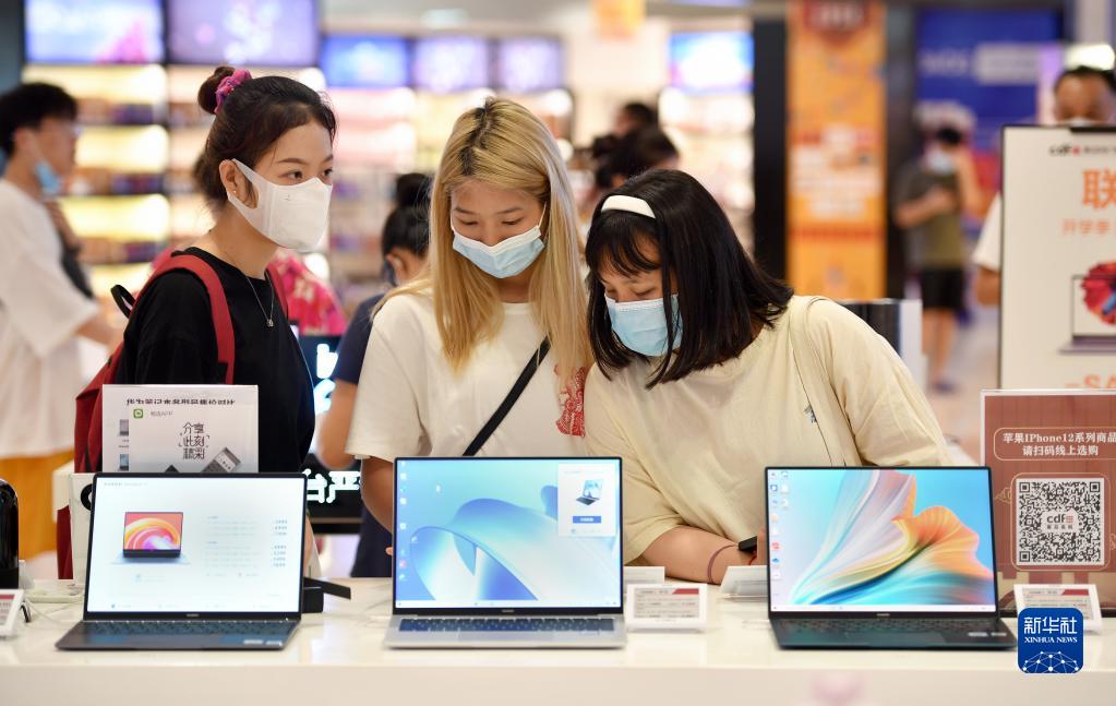 顧客在海口日月廣場免稅店購物(7月2日攝)。新華社記者 郭程 攝