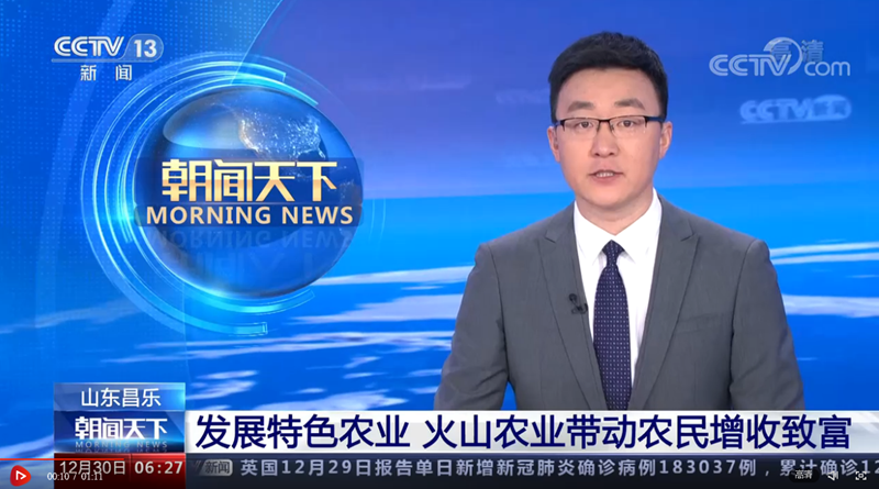 央視網消息:1800萬年前的古火山噴發,給山東昌樂帶來了豐富的火山土資源,因為火山土富含多種微量元素,近幾年,昌樂縣大力發展起了“火山農業”。截至目前,全縣火山農產品種植規模達到9.8萬畝,實現農民增收1.2億元。