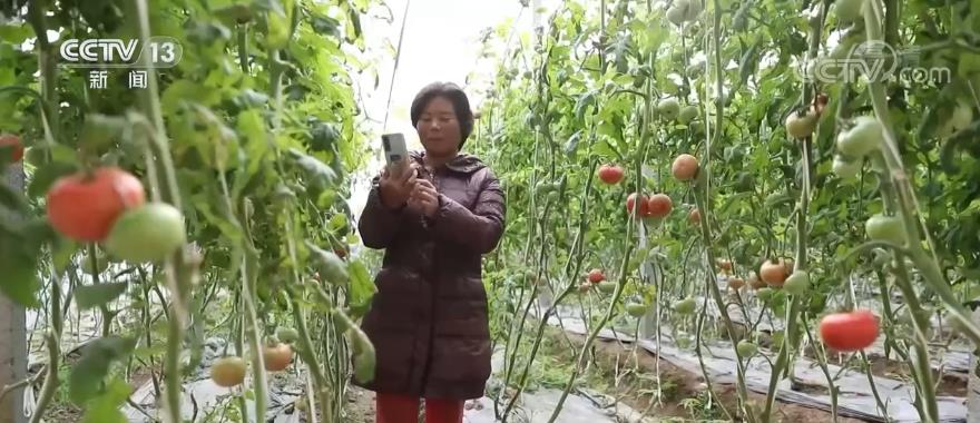 在昌樂縣喬官鎮的一處種植園里,今年43歲的邵香燕正在西紅柿大棚里做直播帶貨。