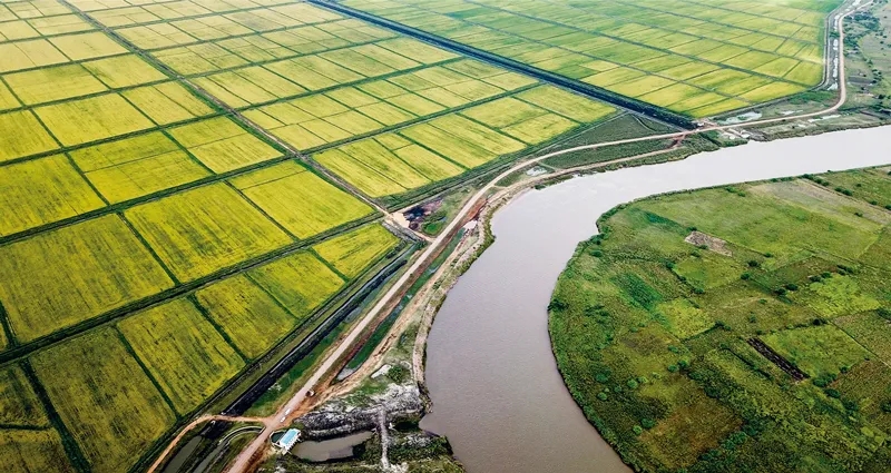 消除貧困是人類面臨的共同挑戰。中國通過“一帶一路”倡議幫助沿線各國增加就業、改善民生,以實際行動為推進全球減貧事業作出貢獻。根據世界銀行研究報告,“一帶一路”倡議將使相關國家約760萬人擺脫極端貧困、3200萬人擺脫中度貧困。圖為2019年4月7日無人機拍攝的莫桑比克中非農業合作項目——萬寶莫桑農業園的水稻田,該項目極大地緩解了莫桑比克糧食短缺問題。 新華社記者 張宇/攝