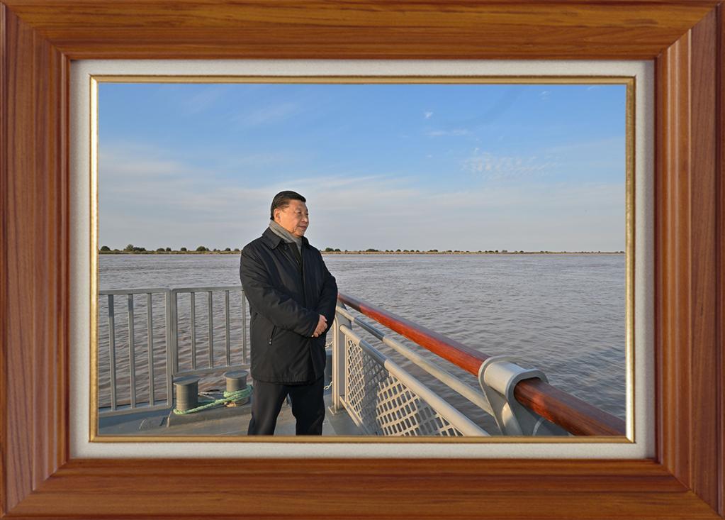 2021年10月,山東東營,習近平總書記來到黃河入海口,實現了黃河上中下游沿線都走到的心愿。