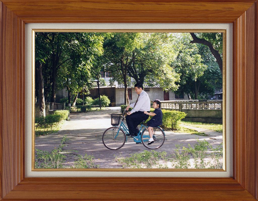 習近平一家三口和習仲勛在一起、習近平在福州時帶女兒玩的兩張照片,自習近平第一次發表新年賀詞以來,就一直在書架上。