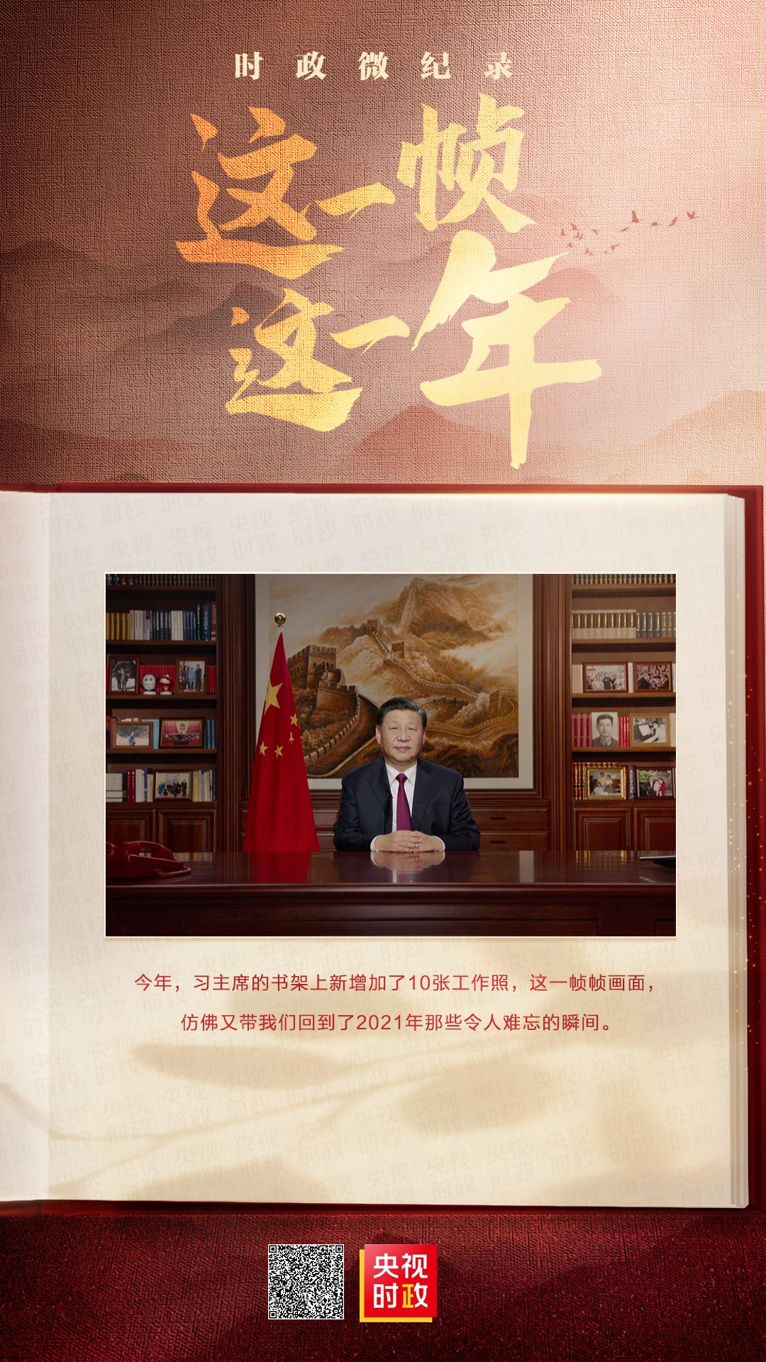 2021年12月31日,國家主席習近平發表二〇二二年新年賀詞。今年,習主席的書架上新增加了10張工作照,這一幀幀畫面又帶我們回到了2021年那些令人難忘的瞬間。