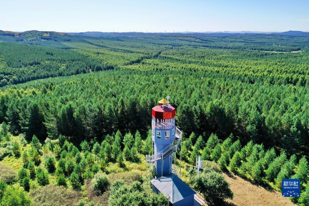 河北塞罕壩機械林場內的望海樓(2021年8月23日攝,無人機照片)。新華社記者 牟宇 攝