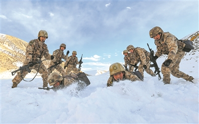 1月4日,陸軍某團官兵在雪地中開展單兵戰術比武。劉曉東攝