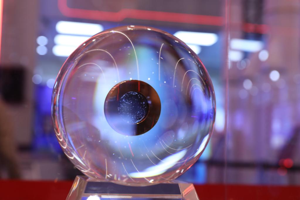 2021年10月21日在北京展覽館拍攝的科技創新成就展展出的月壤樣品。(新華社記者金立旺攝)