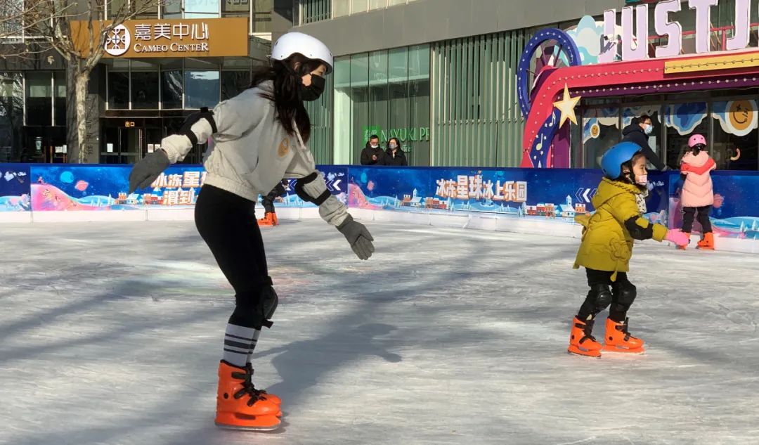 2022年1月1日,市民在北京望京一處室外冰場活動(手機照片)。新華社記者 王艷剛 攝