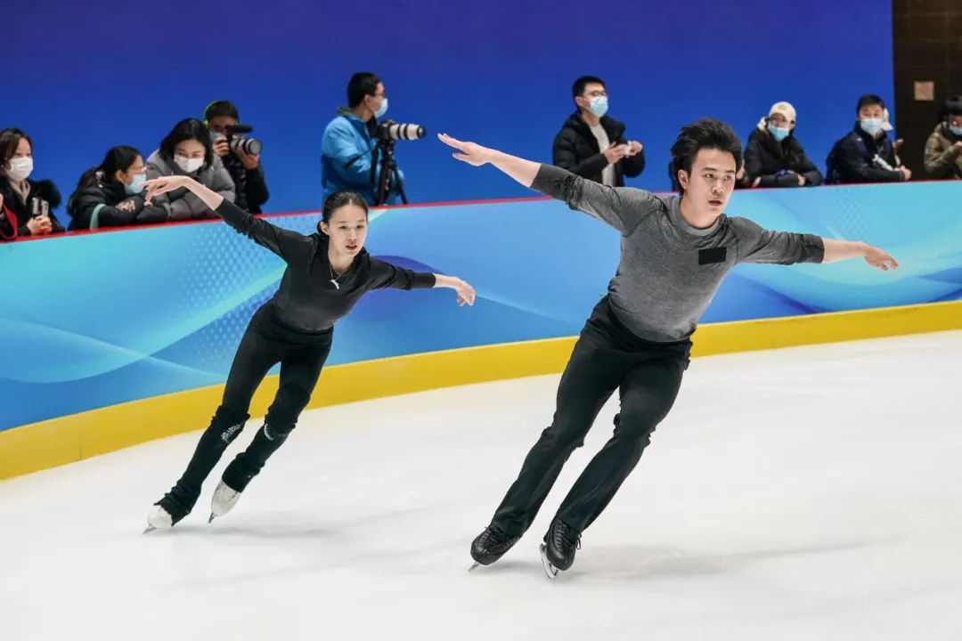 2022年1月5日,中國花樣滑冰國家集訓隊在北京進行北京冬奧會前最后一次公開訓練,三對雙人滑組合在首鋼園冰上訓練中心進行了上冰訓練。新華社記者 彭子洋 攝