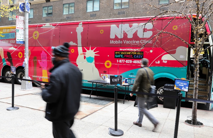 這是2021年12月7日在美國紐約拍攝的新冠疫苗接種車。(新華社記者王迎攝)