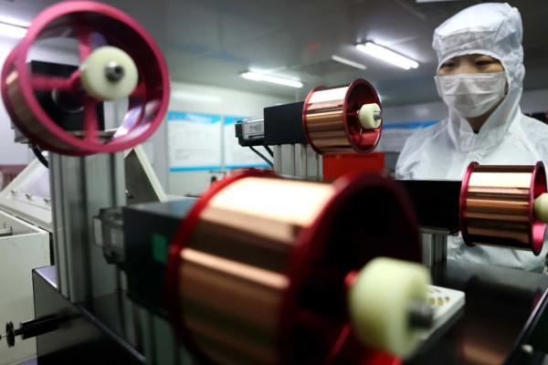 2021年10月14日,在安徽省合肥市瑤海區都市科技工業園,工人在鍵合絲生產車間內工作。新華社發(解琛 攝)
